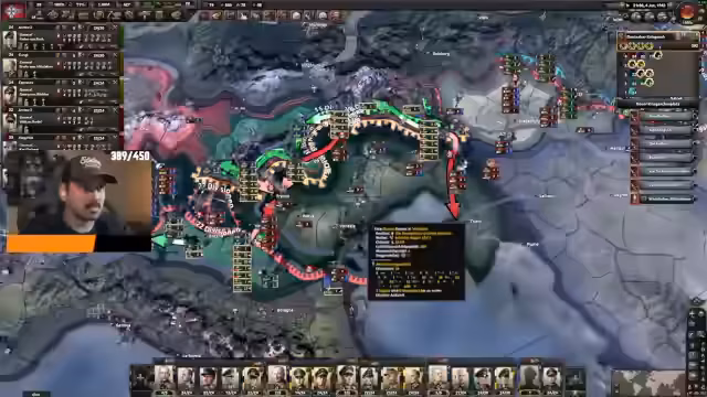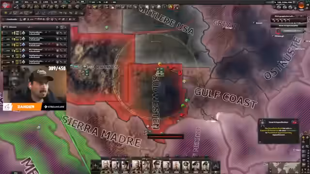 09:12:11Die USA leisten langsam Widerstand, aber die Truppen des Streamers dringen weiter vor. Es wird betont, wie wichtig es ist, viele Divisionen in Amerika zu haben, da die Fläche immer breiter wird. Man hofft, einen großen Teil des eroberten Gebiets zu erhalten und nicht alles Mexiko zu überlassen. Zusätzliche Divisionen werden verlegt, und es wird auf mögliche Bedrohungen durch die Vereinigten Staaten in El Salvador und Guatemala hingewiesen. Das Divisionstemplate wird überarbeitet, um die Angriffskraft zu erhöhen. In Europa wird überlegt, ob man Jugoslawien angreifen soll, um in Richtung Irak vorzurücken, aber es wird bevorzugt, zuerst die Russen zu besiegen. England hat an Einfluss verloren, und es wird eine Pause eingelegt, um die Strategie zu überdenken. Rumänien wird als mögliches Kriegsziel in Betracht gezogen, aber die Gefahr eines Konflikts mit Russland besteht. Truppen werden ausgebildet, und es wird festgestellt, dass man sich im November 1939 befindet und bereits Frankreich, Polen, Benelux und Tschechien erobert hat. Man unterstützt Mexiko im Krieg und plant, die USA zu besiegen, während England keinen großen Einfluss mehr hat.