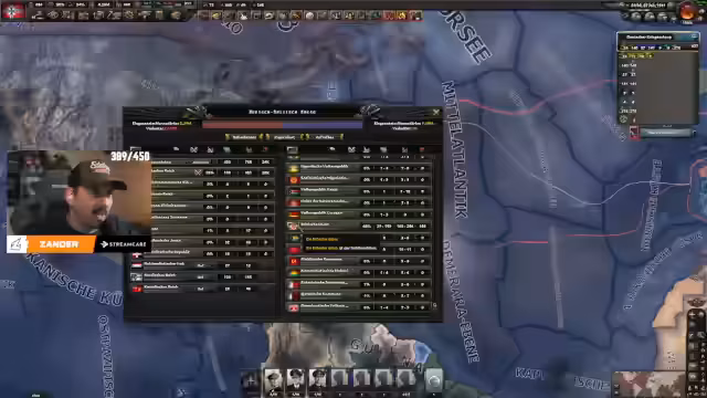 06:47:26Es wird diskutiert, ob es seit dem letzten Spiel vor drei oder vier Monaten Content-Änderungen gab. Das nächste DLC soll Japan und China updaten und gigantische Gameplay-Mechaniken beinhalten, einschließlich Navy und Geld. Die KI soll schwieriger und intelligenter werden, ohne dumme Grenzverschiebungen. Auch die Naval Invasions und die Navy generell sollen überarbeitet werden, ebenso wie der Flugzeugkampf und die generelle Infanterie. Der Streamer hat 532 Stunden in Hearts of Iron investiert, aber Skyrim toppt das immer noch. Es wird überlegt, die verschiedenen Räume runterzuschalten und die Gaming-Channel umzubenennen. Die Nordarmee, Südarmee und Preußen werden zugewiesen. Schweden will Marktzugang und Irak will keinen Angriffspakt. Es wird betont, dass es sich um eine entspannte Koop-Runde handelt, bei der jeder sein eigenes Ding macht und die Weltherrschaft anstrebt. Rommel muss freigeschaltet werden, entweder durch den Führer-Kult oder das Führerprinzip. Die U-Boote und Marineflieger sollen priorisiert werden, um die Lufthoheit und Seehoheit im Ärmelkanal zu erlangen. Es wird auf einen Debuff hingewiesen, der beim Einnehmen von Ländern auftritt und die Goldreserven betrifft.