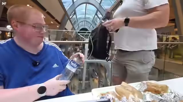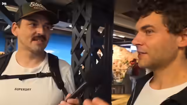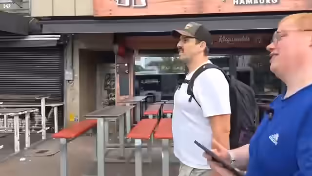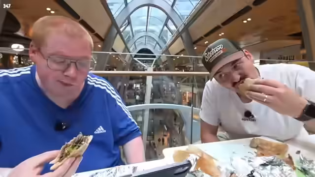 05:13:29Holle, der Betreiber von Honest Kebab, ist an der Gruppe vorbeigegangen, hat sie aber nicht erkannt oder angesprochen. Die lange Wartezeit auf den Döner wird thematisiert. Es wird spekuliert, dass die Schlange länger als erwartet ist. Zander hat lediglich mit "krank" geantwortet, was als positives Zeichen gewertet wird. Es wird die Vorfreude auf den Döner ausgedrückt und betont, dass der Besuch des Dönerladens auf Wunsch der Zuschauer in die Tour eingebaut wurde. Die Mikrofone werden für besseren Sound vorbereitet. Zander hat verschiedene Variationen des Döners bestellt, darunter einen mit Soße, einen ohne Soße und einen mit Signature-Brot. Die Döner wurden alle geteilt, damit beide probieren können. Der Sound wird als gut befunden. Es werden Pommes probiert und als sehr gut bewertet. Es wird festgestellt, dass die Hintergrundgeräusche größtenteils verschwunden sind. Es wird sich über die lange Wartezeit lustig gemacht und der Dönerladen fälschlicherweise als Honest Burger bezeichnet. Es wird die chaotische Situation beim Anstehen beschrieben, bei der sich Freunde vorgedrängelt haben. Es wird entschieden, mit dem Döner mit Soße und normalem Brot zu beginnen.