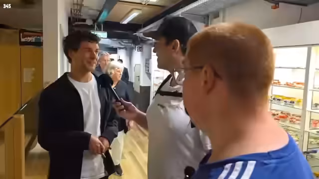 04:37:30Die Gruppe erreicht Honest Kebab, stellt jedoch fest, dass die Schlange sehr lang ist. Es wird überlegt, ob sich der Kameramann irgendwo hinsetzen soll, während gewartet wird. Es wird gehofft, dass der Hotspot von Zander funktioniert, damit der Chat gelesen werden kann. Die Mikrofone werden zum Aufladen vorbereitet. Es wird sich gefragt, ob jemand im Chat bereits den Döner von Holle gegessen hat. Es wird ein Foto mit einem Fan gemacht. Der Kameramann äußert seine Höhenangst. Es wird festgestellt, dass die Mikrofone in kurzer Zeit fast vollgeladen sind. Es wird erwähnt, dass Holle oft in seinem Laden anwesend ist. Es wird überlegt, ob Holle angesprochen werden soll. Es wird bemerkt, dass eine Taube im Laden herumläuft. Es wird über die Gewichtsabnahme gesprochen. Es wird gewitzelt, dass die Zuschauer wollen, dass jemand in der Rutsche stecken bleibt. Zander steht an, um den Döner zu holen. Die Wartezeit beträgt bereits 15 bis 20 Minuten. Es wird überlegt, ob Zander verschiedene Brotsorten bestellt hat. Es wird bemerkt, dass jemand ein Handy liegen gelassen hat.