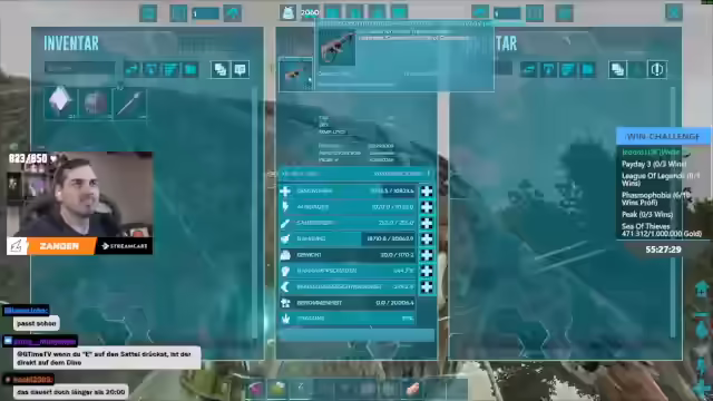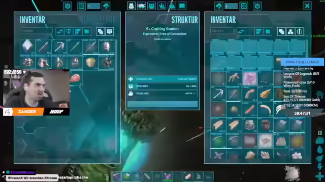 01:50:45Es wird über eine Challenge von Chef Strobel in League of Legends gesprochen, bei der alle Champions in einer Runde gewonnen werden müssen. Eine ähnliche Challenge in Valorant oder Marvel Rivals wird in Betracht gezogen. Auch eine Dead by Daylight Challenge mit Survivorn und begrenzten Leben wird diskutiert. Es wird überlegt, ob man die Challenge mit einem Timer versehen soll oder so lange streamen soll, bis sie abgeschlossen ist. Es wird überlegt, ob man die Challenge in Hardcore spielen soll, aber es wird befürchtet, dass dies zu lebenslangem Content führen könnte. Danach geht es um das Sammeln von Artefakten in Ark, um Bosse zu besiegen und den Endboss zu erreichen. Es wird über Case O gesprochen, einem unterhaltsamen Twitch-Streamer, der Trash-Horror-Games und Simulatoren spielt. Es wird überlegt, ein KSO-Cosplay zu machen. Es wird ein Artefakt geholt und überlegt, Polymer zu holen, um den Industrial Grinder zu bauen.
