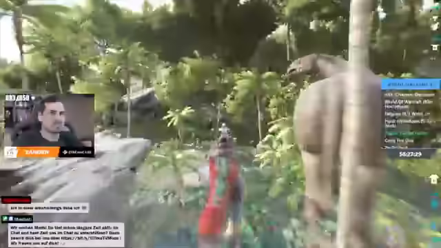04:08:56Es wird ein Mini-Außenposten aufgebaut, von dem aus alleine in die Swamp Cave gegangen werden soll, da diese zu eng für zwei Personen ist. Es wird über die Position auf der Karte diskutiert und der blaue Airdrop gesucht. Es wird die Ausrüstung in den Schrank gelegt und die Rüstung angezogen, bis auf die Sauerstoffflasche. Der Ghillie-Suit und die Handschuhe werden angezogen, um Schutz zu bieten. Es wird der Megatherium aus dem Ball geholt, der bereits einen Sattel hat und in die Höhle gebracht werden soll. Es wird erklärt, dass die Höhle voller Insekten ist und der Megatherium durch das Töten von Insekten einen Enrage-Buff erhält. Es wird darauf hingewiesen, dass es Stellen in der Höhle gibt, wo der Megatherium nicht durchkommt und in den Ball zurückgeholt werden muss.