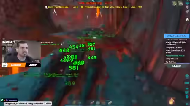 07:45:42Nach dem Kampf gegen den Drachen wird überlegt, ob die Theris hochgezüchtet oder über die Konsole geholt werden sollen. Es wird entschieden, die Theris hochzuzüchten und den Endboss zu machen, um den Zuschauern das Ende zu zeigen. Es wird zur Base zurückgeflogen. Normalerweise wird Gemüsekuchen verwendet, um die Theris vor dem Feuerschaden zu schützen. Die Arena des Drachen mit dem Vulkan im Hintergrund wird als cool empfunden. Es wird festgestellt, dass das Spiel einige geile, aber auch viele beschissene Sachen hat. Viele Sachen sind mit sehr viel Zeitaufwand verbunden. Der Drache wird als der schwierigste von allen Bossen angesehen. Es wird von einem Vorfall berichtet, bei dem die Theris in die Lava gebackt sind, bevor der Dungeon betreten wurde. Es wird die Frage gestellt, ob 12 Stunden Euro Truck Simulator oder 12 Stunden ARC bevorzugt werden. Euro Truck Simulator wird bevorzugt. Es wird festgestellt, dass ARK grindlastig ist und das Balancing nicht optimal ist. Es wird betont, dass das Spiel nicht schlecht gemacht werden soll und der Reiz des Spiels verstanden wird. Es wird vermutet, dass das Spiel mehr Spaß machen würde, wenn man es zusammen erkunden würde, anstatt einfach nur den Anweisungen zu folgen. Die Höhlen und Artefakte waren für Zander nur ein nötiges Übel, um zum Endgame-Content zu kommen. Die Rüstung ist komplett kaputt und muss repariert werden.