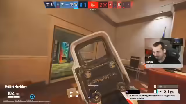 07:20:24Der Stream beginnt mit einer intensiven Runde Rainbow Six Siege, in der der Streamer komplexe Taktiken und Map-Kenntnisse demonstriert. Er beschreibt kritisch das Vorgehen des Gegners, der auf mehrere Bereiche der Karte gleichzeitig drängt, und äußert seine Verärgerung über ein sogenanntes Blackbeard-Play. Es geht umTiming, Positionierung und das Misslingen eigener Aktionen. Der Streamer beschreibt die Map als überarbeitet und die fehlenden Gadgets wie Feuerröhren als problematisch. Zudem wirft er Fragen zur Funktionsweise von Ausrüstung wie dem Mündungsfeuerdämpfer auf und vermutet eine visuelle Veränderung der Map Oregon, was zu einer ungewohnten Spielsituation führt.