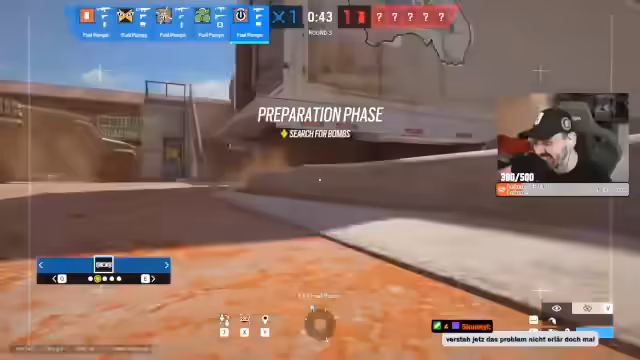 01:44:10Zu Beginn des Stream-Ausschnitts konzentriert sich das Team auf die Eroberung des 'Bathroom'-Raums, mit dem Streamer, der auf seine Drohne angewiesen ist, um Informationen zu sammeln. Eine erfolgreiche C4-Explosion gegen den Blitz-Operator führt zu erheblichem Schaden, aber der Gegner entkommt. Ein strategischer Fehler wird eingestanden: Das Team hatte sich nicht auf den Blitz eingestellt, was zum Verlust der Runde führt. Trotzdem wird die nächste Runde optimistisch mit einem Fokus auf die 'Aviator'-Seite angegangen.