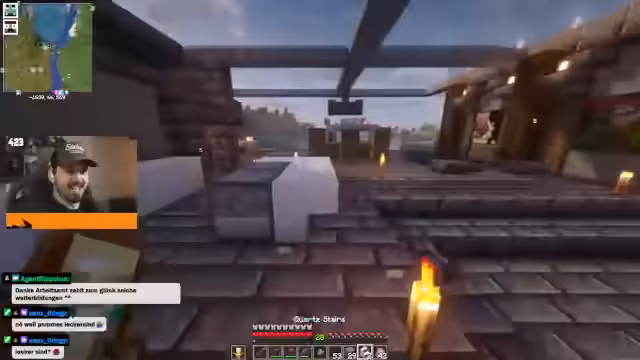 00:38:40Nachdem der Streamer in Craft Attack wechselt, zeigt er den Fortschritt an seinem Hauptgebäude. Er geht ins Detail über den Bau verschiedener Bereiche, darunter ein Wohnzimmer mit Kamin, eine Küchen-Ecke, ein Schlafzimmer und eine Lagerraum. Er präsentiert einen zufällig entstandenen Geheimgang, der mit einer Schuh-Interaktion funktioniert, und zeigt verschiedene Dekorationen wie glowstone Laternen und Kamine. Der Bau wird als spontan und gelungen gelobt.