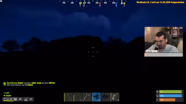 07:27:49Ein Spieler mit einem Pferd wurde in der Nähe der Basis gesichtet, was kurzzeitig Panik auslöste. Es wird die Möglichkeit von Night Vision im Spiel angesprochen. Die Schwierigkeit, Gegner unbemerkt zu überraschen, wird diskutiert, ebenso wie die Anwesenheit eines Händlers auf der Straße. Es wird festgestellt, dass das Team von Dalu, bestehend aus erfahrenen Rust-Spielern, eine starke Konkurrenz darstellt. Suki, ein Mitglied des Teams, wird als "Base Mama" beschrieben, die sich gut mit den Spielmechaniken auskennt und unermüdlich Ressourcen verwaltet. Um in Rust erfolgreich zu sein, ist es wichtig, sich auf das Farmen und Sammeln von Ressourcen zu konzentrieren. Das Team plant, Schilder zu platzieren und Revolver herzustellen, um sich besser verteidigen zu können. Es wird überlegt, ob man ein Haus für sich beanspruchen kann, wobei eine Tankstelle als mögliche Basis in Betracht gezogen wird.