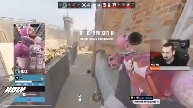 06:01:04Das Halbfinale gegen das als stark eingeschätzte KS-Team beginnt. Die Vorbereitungen umfassen das Bannen von Maps wie Kaffee und die Auswahl von Operatoren wie Ace, um dem Gegner Druck zu machen. Während des laufenden Spiels werden fortwährend taktische Anweisungen gegeben und Positionen der Gegner gecallt. Das Match ist geprägt von schnellen Entscheidungen, Spawn-Peaks und aggressiven Angriffen, insbesondere auf Map-Bereiche wie Piano und Bakery. Das Team zeigt eine hohe Koordination, um der Erfahrung des Gegners standzuhalten.