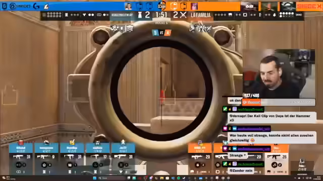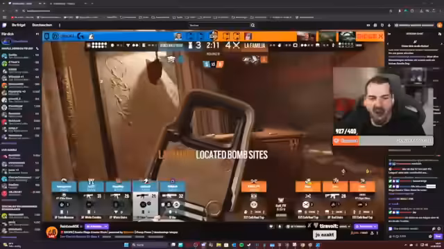 02:52:06Der Stream konzentriert sich auf intensive Gameplay-Momente, darunter taktische Vorgehensweisen wie das Brechen von Verteidigungen und das Nutzen von Gadgets. Das Team analysiert das gegnerische Spielstil von Early Boy, insbesondere deren Fokus auf Valkyrie und Castle. Basierend auf dieser Erkenntnis werden Strategien wie das Bannen von Valkyrie, das aggressive Vorgehen und das Nutzen von Operatoren wie Breach und Kali zur Überwindung der gegnerischen Verteidigungen erarbeitet. Die Kommunikation über Callouts wie 'Top Main Stairs' und 'Garage' ist entscheidend für den Erfolg.