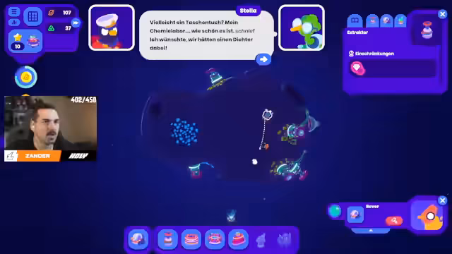 03:14:05Nachdem er ActiveMatter verlassen hat, wechselt der Streamer zu Starbirds, einem Spiel vom Entwicklerstudio Dorfromantik. Er beginnt mit einem Tutorial, in dem er die Grundlagen des Spiels lernt: Platzieren von Extraktoren auf Asteroiden, Sammeln von Rohstoffen wie Eisen und Wasser, sowie die Erstellung von Einrichtungen wie Raffinerien. Das Spiel wird als witzig, positiv bewertet und erfindet den Begriff "Nasenhaar-Elfe" für einen der Charaktere. Das Tutorial dient dazu, die Basis zu schaffen, um ein mysteriöses Objekt auf einem Asteroiden zu untersuchen.