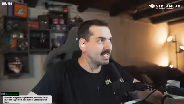 00:24:49Der Stream startet mit einem dramatischen Zwischenfall. Der Streamer berichtet, dass sein Kater Hardy aus dem Fenster seines Schwagers entwich. Eine groß angelegte Rettungsaktion mit mehreren Verwandten initiierte der Streamer. Hardy war auf einem Schornstein zu sehen, stürzte aber ein und landete im Kamin, wo er unverletzt geborgen werden konnte. Der Vorgang sorgte für erhebliche Verzögerung des Streambeginns, wurde aber glimpflich abgeschlossen.