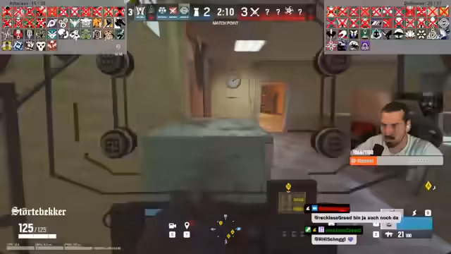 00:00:00Der Stream beginnt mit technischen Problemen, da der Stream offline ging, während das Spiel weiterlief. Nach der Wiederverbindung startet eine Runde Rainbow Six Siege mit Kapitao. Der Streamer plant, als nächstes Operator zu picken, während sein Teammate Fragen zur Map und zu Strategien stellt. Die Konzentration liegt auf der Sicherung von Fenstern und dem Setzen von Gadgets wie der Bandit-Batterie, um Verteidigungspunkte zu verstärken.