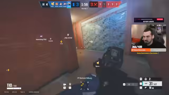 02:46:26Im Verlauf des Spiels kommt es zu einer chaotischen Runde, in der der Gegner unerwartet über den Connector einbricht. Das eigene Team ist verwirrt und findet keine klare Antwort auf die gegnerische Bewegung. Der Streamer schießt auf eine Nomad, kann sie aber nur verletzen. Es werden taktische Änderungen für die nächste Runde diskutiert, wie z.B. die Verwendung von Goyo, um kurz vor Rundenende zu schießen, oder die Einführung von Mute, um die Castle-Windows zu schützen.