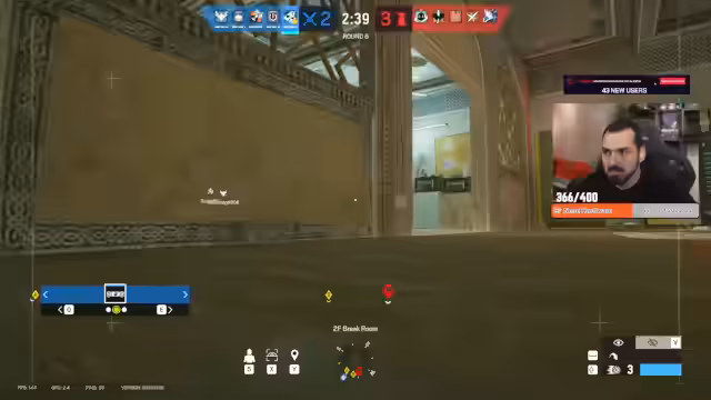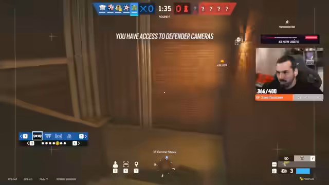 04:10:40Die Runde beginnt mit strategischen Vorbereitungen auf dem Angriffsmap Clubhouse. Es wird das Ziel verfolgt, den Bereich 'CC' zu brechen, wobei CCTV-Kameras als entscheidend für die Informationssammlung angesehen werden. Der Streamer erkundet mit Drohnen die Verteidigungsanlagen und lokalisiert Gegner, die sich im Break Room und um die CC-Tür gruppiert haben. Nach der erfolgreichen Eliminierung eines Gegners wird eine neue Strategie für den weiteren Vormarsch geplant, wobei auch verschiedene Gadgets wie Kapkan-Fallen und ein Diffuser eine Rolle spielen.