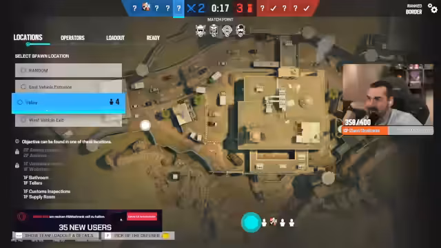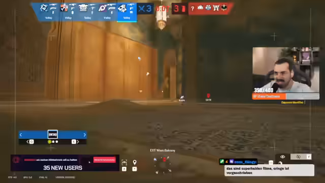 02:50:02Der Streamer beginnt mit Rainbow Six Siege nach einer kurzen Pause wegen eines Autothemas. Er erwähnt, dass er am Montag einen Leihwagen erhält. Er äußert sich überrascht über einen Clip, in dem Spieler scheinbar durch eine Wand schießen können, was er als krank und unglaublich bezeichnet. Nintendo möchte mitspielen, was zu einer Elo-Diskussion führt. Der Streamer plant, zwei bis drei Runden zu spielen und dann eventuell zu Counter-Strike oder Warhammer 40k zu wechseln.