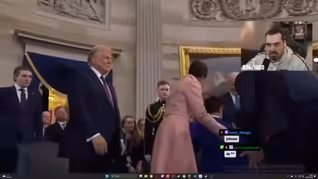 01:47:06Der Streamer schaltet live zur Vereidigung von Donald Trump. Auf dem Podium fällt die auffällige, als begrabener Stil interpretierte Kleidung von Melania Trump auf. Die Zeremonie ist stark von religiösen Elementen geprägt, mit Gebeten und Verweisen auf Gott, was den Streamer als sehr amerikanisch und für deutsche Verhältnisse ungewöhnlich kommentiert. Die Verlesung des Amtseides beginnt.