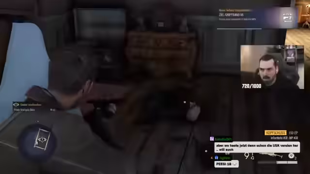 00:41:55Während des Spiels ereignen sich mehrere kritische Fehler, die den Missionserfolg gefährden. So wird der Streamer versehentlich von einem eigenen Granaten-Splitter getroffen und stirbt. Später gerät er durch einen Bug in eine unendliche Treppe, was ihn frustriert. Auch wird er durch einen unachtsamen Schuss auf einen Gegner entdeckt, was den Alarm auslöst. Dies führt zu einer chaotischen Fluchtssituation, in der er sich notdürftig verarzten muss.