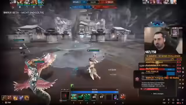 Zander und @sirmanajuice bestreiten eine Win Challenge, bei der sie verschiedene Spiele ausprobieren. Darunter fallen Smite 2, Marvel Rivals, The Finals, Supervive und Rainbow Six Siege. Es kommt zu technischen Problemen und Verbindungsabbrüchen, die den Spielfluss beeinträchtigen. Strategien, Teamwork und Herausforderungen stehen im Fokus.