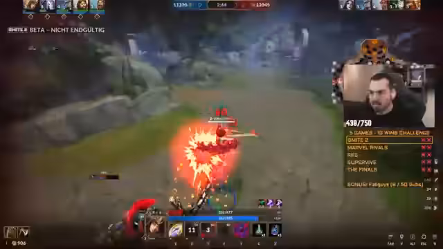 04:56:41Nach den anhaltenden technischen Problemen und der langen Session in Smite 2 wird zu Marvel Rivals gewechselt. Dort gelingt der erste Win, was eine spürliche Besserung der Stimmung bewirkt. Der Streamer äußert, dass Marvel Rivals kein Problem darstelle und der Flow nach dem schwierigen Smite-Verlauf wiederkehrt. Gleichzeitig stellt er fest, dass die Zuschauerzahlen für dieses Spiel geringer sind.