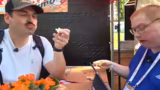 13:05:29Auf der Suche nach einem traditionellen Berliner Döner geraten die beiden in eine Diskussion über die Bedeutung von Currywurst und Dönern in verschiedenen Regionen. Der Streamer zieht einen Hamburger Döner einem Berliner vor, was zu hitzigen Debatten im Chat führt. Gleichzeitig werden unterwegs mehrfach kulturelle und geschichtliche Ornisse wie das Brandenburger Tor und das Abgeordnetenhaus passiert, wobei Kevin betrunken dazu aufgefordert wird, Schilder vorzulesen.