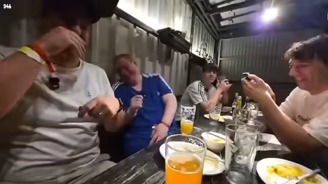 12:29:12Ein unerwartetes Element ist die Musik in der Bar, die aussieht wie Minecraft-Hintergrundmusik. Der Streamer und sein Begleiter sind davon fasziniert und halten es für eine perfekte Bar-Atmosphäre. Sie versuchen, das Personal darauf anzusprechen, welches nur sagt, dass es sich um ein gutes Spiel handelt. Die beiden sind so überzeugt, dass sie es nicht wagen, den Laden zu verlassen, und beschließen, noch dort zu bleiben.