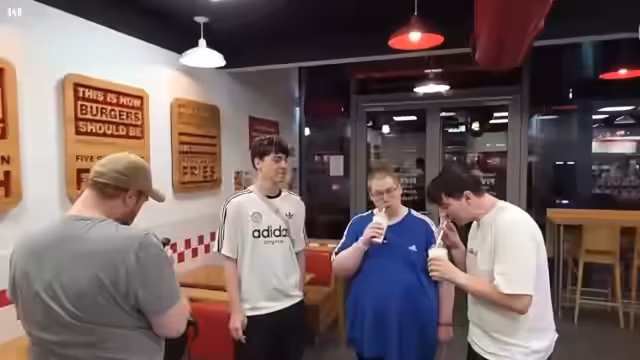 13:24:23Auf dem Weg zum Döner machen die beiden einen Zwischenstopp in einem Fast-Restaurant, um berühmte Milchshakes zu probieren. Es wird eine Challenge gestartet, bei der extrem kreative und ungewöhnliche Shakes mit Zutaten wie Bacon, Banane und Oreo bestellt werden. Dies führt zu humorvollen Reaktionen und viel Gelächter im Chat und von den Teilnehmern selbst.