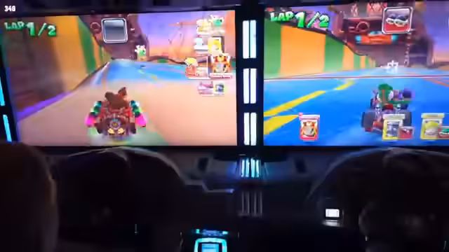 01:23:25Nachdem die uninteressanten Reseller-Hallen verlassen wurden, begeben sich die Streamer in die großen Gaming-Hallen der Messe. Dort werden verschiedene Stände und neue Produkte von Konsolen bis hin zu Küchengeräten erkundet. Ein besonderes Highlight ist die Entdeckung eines großen Barbie-Autos, in dem die beiden ein gemeinsames Foto machen. Parallel dazu wird ein großes Gewinnspiel von Panasonic für die Community beworben, bei dem zahlreiche Produkte wie Fernseher und Kameras verlost werden.