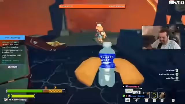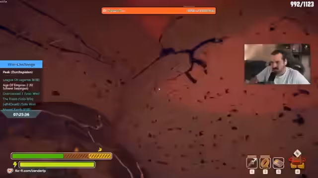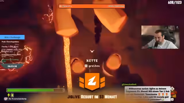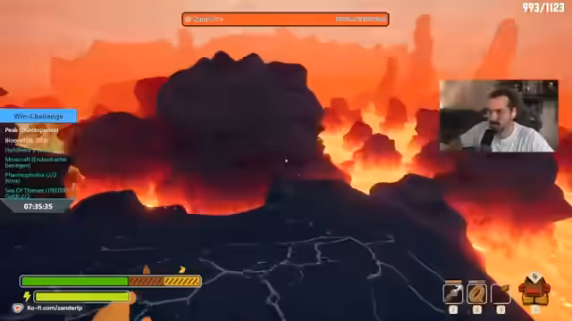 02:59:40Die Streamer kämpfen gegen die Lava und Energieverluste beim Aufstieg eines Vulkans. Kevin stürzt ab und der gemeinsame Versuch, ihm zu helfen, scheitert an den Schadensquellen und dem knappen Ressourcenmanagement. Sie erkennen, dass die Map trotz intensiver Bemühungen wahrscheinlich nicht zu Ende gebracht werden kann und müssen den Run abbrechen.