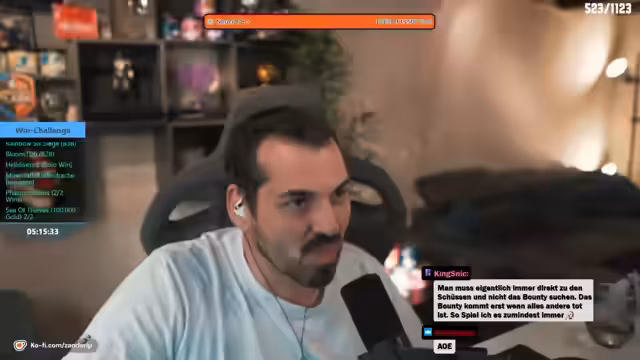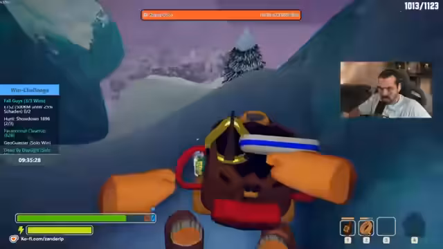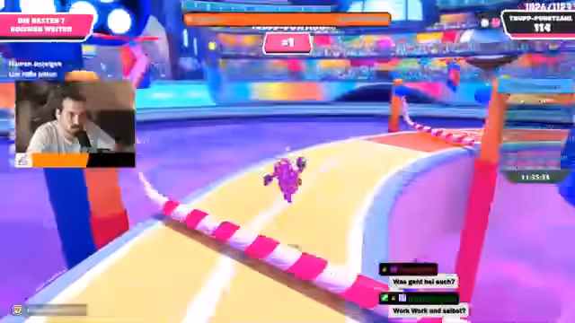 00:13:16Die Session wechselt zu Fall Guys, einem Spiel, das vom Glücksfaktor dominiert wird. Zander und sein Partner kämpfen gegen Gegner, die als Triader oder Achtjährige bezeichnet werden. Das Spiel wird als stressig und unfair empfunden, da Erfolge oft von der Zufälligkeit abhängen. Die Freude über einen Sieg ist groß, da dieser als Schaden für einen vermeintlichen kindlichen Gegner empfunden wird.