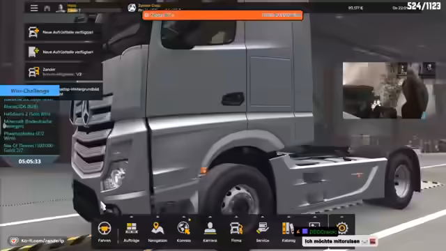 06:49:08Aufgrund der technischen Probleme mit Age of Empires 2 wird als Alternative Euro Truck Simulator 2 gewählt. Es ist eine kurze Einrichtung und Erstellung eines Charakters nötig. Für einen gemeinsamen Spielmodus 'Konvoi' wird eine Lobby erstellt und ein Passwort festgelegt, um zusammen fahren zu können.