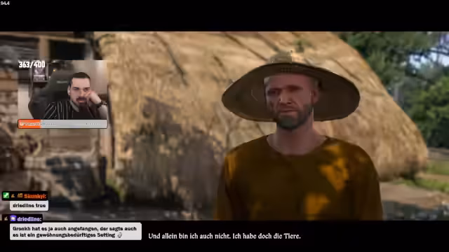 03:50:09Der Streamer kehrt in das Spiel Kingdom Come: Deliverance 2 zurück und setzt die Haupthandlung fort. Er sucht nach einem Pferd, das er im letzten Teil verloren hat, und führt seine Missionen im Auftrag des Semin fort. Er interagiert mit NPCs wie Johann dem Schlund und handelt über Rüstungen und Waffen. Der Streamer beschreibt das Spiel als brutal entspannt und lobt die Authentizität der Spielwelt, auch wenn er einige Charaktermodelle als repetitiv empfindet.