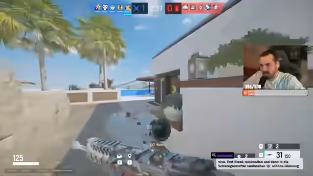 02:54:40Der Fokus liegt auf dem Spiel Rainbow Six Siege. Es werden Angriffsstrategien für die Map 'Attack' besprochen. Der Streamer sucht gezielt nach dem Operator Thatcher, um Verstärkungen zu entfernen, und plant, über den VIP-Bereich vorzudringen. Entscheidungen werden getroffen, basierend auf der Versterkung der Wände und der Position der Gegner.