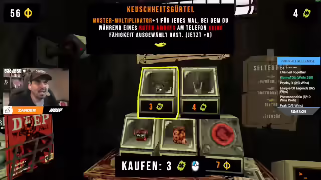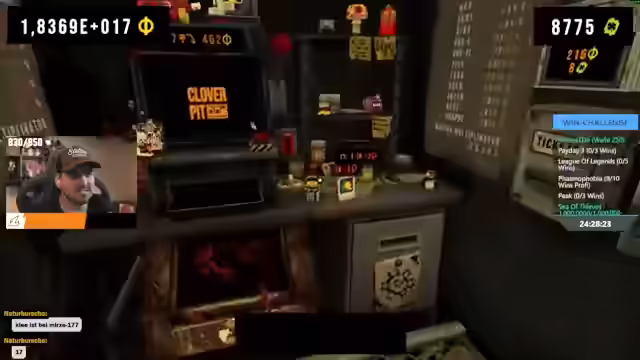 14:23:43Es wird realisiert, dass der Anruf bis zum Ende der Deadline bestätigt werden kann, was Erleichterung auslöst. Es wird überlegt, ob der temporär gesteigerte Wert als Basis für den Anruf dient. Die Möglichkeit, mit Zigaretten zu rerollen, um die Batterie zu schonen, wird diskutiert. Der Pilz, der den Wert aller Symbole bis zum Ende der Deadline verdoppelt, wird als starkes Item erkannt. Es wird die Kristallkugel diskutiert, die einen Kettenmodifikator für bestimmte Symbole bietet, aber deren Nutzen für die Zitrone in Frage gestellt. Der Glücksbringer Abyssus wird eingesetzt, um die Zigarette zu speichern und in der nächsten Deadline wiederzuverwenden. Es wird eine Kombination aus Kreuz und Megafon erwähnt, die es ermöglicht, vier Relic-Plätze zu erhalten und mit 13 oder 14 Glücksbringern zu spielen. Der Streamer äußert die Vermutung, dass dies möglicherweise gefixt wird. Es wird die Idee verworfen, auf die Leichenteile zu spielen, und stattdessen Speicherkarten in Betracht gezogen. Es wird überlegt, einen Run zu starten, bei dem auf Zinsen gespielt wird, aber der aktuelle Glücksticketbild wird als zu stark empfunden. Der Streamer skaliert den Wert noch einmal hoch, um möglicherweise auf die 666 zu spielen, vergisst aber, die Zitronenkacke aufzuladen, was zu einem Verlust von vielen Billionen führt. Das Spielkonzept von Clover Pit wird gelobt, und es wird festgestellt, dass es kein wirkliches Leaderboard gibt, da man bis unendlich skalieren kann.
