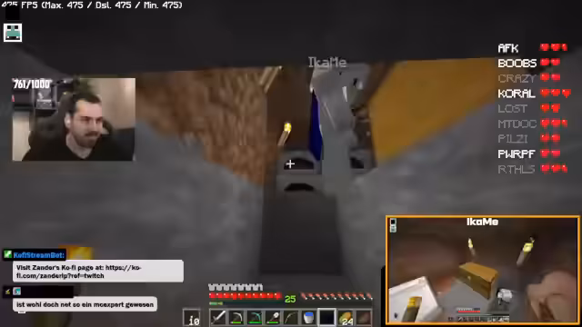 03:55:18Der Streamer und sein Mitspieler verlieren in Minecraft ihren gesamten Loot und beschließen, neu zu beginnen. Sie planen, Diamantenfarmen zu bauen, Diamantrüstungen zu verzaubern und in den Nether zu gehen. Sie bauen einen Minenschacht ab, haben aber kein Essen. Der Streamer stellt fest, dass sie die Zusammenarbeit verbessern müssen, da sie in der Vergangenheit oft gestorben sind, weil sie sich nicht gehalten haben.