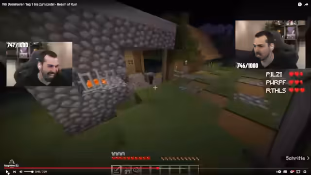 04:51:45Es werden zwei Eisen-Spitzhacken hergestellt und Leder, Zuckerrohr und Knochen untereinander aufgeteilt. Ein goldener Apfel wird hergestellt. Es wird über das Vermissen von gemeinsamen Zocksessions mit anderen gesprochen. Es wird auf eine Frage im Chat eingegangen, ob der Streamer böse guckt, was verneint wird. Es wird ein Eisenschwert gebaut. Es wird überlegt, ob man in der Höhle weitergehen soll oder nicht. Es wird ein Minenschacht entdeckt und betont, dass man zusammenbleiben soll, um nicht wie gestern oft zu sterben. Es werden Diamanten gefunden. Es wird ein Spawner gefunden und abgebaut. Es werden Fackeln, Melonenkerne und Dias gefunden. Es wird über Fitness gesprochen und der Plan, wieder aktiv Sport zu machen, wird erwähnt. Es wird überlegt, wie man die Zuschauer motivieren kann, Sport zu treiben. Es werden Ziele für Sport gesetzt, wie z.B. 10.000 bis 15.000 Schritte am Tag. Es wird überlegt, wie man das mit dem Stream verknüpfen kann. Es wird über ETFs gesprochen und die positiven Erfahrungen damit geteilt. Es wird überlegt, mit der Mutter ein Haus mit zwei Mitwohnungen zu bauen.