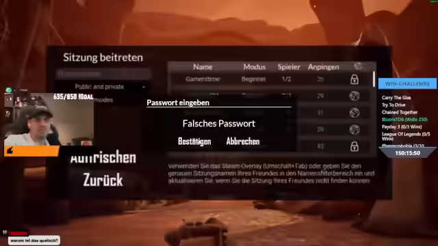 04:32:25Nachdem entschieden wurde, die Flagge abzugeben, wird über den Wechsel zu einem anderen Spiel diskutiert. Bloons TD 6 wird als mögliche Option genannt, wobei das Ziel ist, Welle 250 zu erreichen. Es wird angemerkt, dass dies im Multiplayer schwierig werden könnte. Alternativ wird Vorgeist erwähnt, aber für einen späteren Zeitpunkt aufgespart. Es gibt Probleme mit dem Spielstand in Bloons TD 6, was zu Verzögerungen führt. Währenddessen wird über den Thermomix gesprochen, den ein Teammitglied bald erhalten wird, und es entstehen humorvolle Diskussionen über dessen mögliche Verwendung im Stream. Es wird versucht, das Problem mit dem Spielstand zu beheben, indem das Spiel neu gestartet und der Twitch-Account verbunden wird. Nach anfänglichen Schwierigkeiten gelingt es schließlich, das Spiel zu starten und eine Lobby zu erstellen. Das Team beginnt mit dem Spiel und setzt sich das Ziel, Welle 250 zu erreichen.