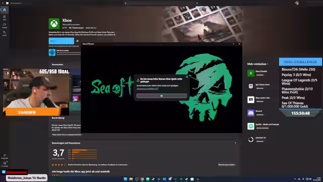 01:57:55Es gibt Schwierigkeiten beim Starten von Sea of Thieves aufgrund von Problemen mit der Xbox App. Eine Neuinstallation der App oder das Herunterladen einer bestimmten Datei aus dem Microsoft Store könnte das Problem beheben. Das Problem tritt hauptsächlich im Zusammenhang mit Sea of Thieves auf, was frustrierend ist, da das Spiel von Microsoft selbst veröffentlicht wird. Nach der Neuinstallation der Xbox-App konnte das Spiel jedoch gestartet werden. Die Xbox-App sagt einem, wenn man nicht einlädt, kann ich das Spiel entweder, also ich bin ja im Spiel, das erkennt die Xbox-App auch und die Xbox-App sagt dann, hey, du wurdest gerade eingeladen und du hast die Einladung angenommen. Möchtest du jetzt die Einladung annehmen in dem Spiel, was du gerade gestartet hast, um dieses Spiel zu spielen? Oder möchtest du das Spiel nochmal parallel zu dem Spiel, was du gestartet hast, nochmal streamen und dann mit dem gestreamten Spiel die Einladung annehmen?