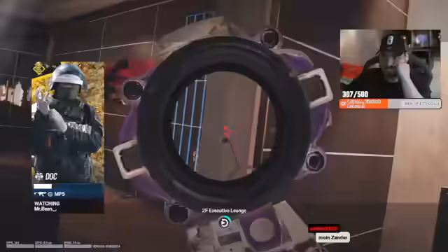 02:03:08Der Streamer spielt intensiv Rainbow Six Siege. Er wechselt häufig zwischen Operatoren wie Thatcher, Maverick, Aruni und Doc und diskutiert taktische Entscheidungen. Er analysiert Spielzüge, markiert gegnerische Positionen (Camps) und ist oft überrascht von den Aktionen der Gegner. Er äußert auch Frustration über Zeitverzögerungen und kritisiert manchmal das Spielverhalten seiner Mitspieler, wobei er betont, dass er Discord nur mit Leuten nutzt, mit denen er bereits gespielt hat, um negatives Erlebnisse zu vermeiden.