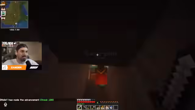 07:37:10Bei der Erkundung der Ancient City wird ein Warden gespawnt, nachdem zu viel Lärm gemacht wurde. Er verfolgt die Spieler rücksichtslos und kann sogar durch Blöcke hindurch schlagen. Es bricht Panik aus, da sich die Spieler in einem riesigen Labyrinth gefangen fühlen. Nach einer hektischen Flucht kann Zander den Ausgang finden, aber er hat das benötigte Soul Sand nicht persönlich bergen können.