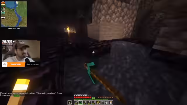 01:32:44Der Streamer erkundet eine Höhle in der Nähe seiner Basis, nachdem er sich durch den Stein gegraben hat. Er stößt auf eine große Diamantenader, die er und ein anderer Teilnehmer, Early, farmen wollen. Dabei verlieren sie kurzzeitig die Orientierung und gehen getrennte Wege, was zu einer turbulenten Situation führt. Early findet schließlich eine beeindruckende Diamantenmenge und ist überglücklich über seinen "ersten Diamant" in diesem Projekt, während der Streamer von der Menge begeistert ist.