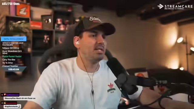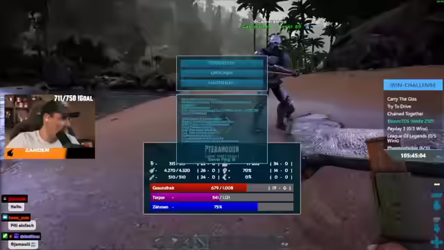 08:22:38Es kommt zu erheblicher Frustration, nachdem das Spiel abgestürzt ist und ein gezähmter Dino gestorben ist, während der Streamer kurzzeitig abwesend war. Der Streamer äußert seinen Unmut darüber, dass er für etwas verantwortlich gemacht wird, das passiert ist, während er nicht im Spiel war. Der Chat verhöhnt den Streamer, indem er vorgibt, dass sein Charakter im Spiel gestorben sei, was seine Wut noch verstärkt. Trotz der anfänglichen Verärgerung und der Aussage, sich zu dem Spiel zwingen zu müssen, wird das Sub-Ziel erreicht, was bedeutet, dass der Stream 24 Stunden lang laufen wird. Der Streamer bedankt sich für die Subs und erwähnt, dass er kurz davor war, komplett auszurasten. Es wird diskutiert, wie man mit dem Dino farmen kann, und der Triceratops wird ins Inventar gelegt. Der Chat wird für seine Beteiligung an dem Troll gelobt und kritisiert.