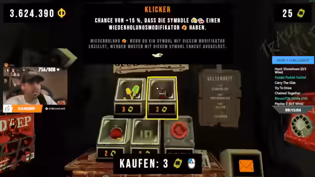 12:17:30Der Streamer stellt fest, dass die Challenge ohne Bestrafung verlaufen ist, was den Spaßfokus betont. Es wird diskutiert, warum bestimmte Symbole wie Kleeblätter zu häufig erscheinen, obwohl ihre Spawnrate niedrig sein sollte. Dies führt zu Frustration. Die Mechanik der Glücksbringer, die durch den roten Knopf aktiviert werden und Fähigkeiten doppelt auslösen, wird als zentral für die hundertprozentige Jackpot-Wahrscheinlichkeit identifiziert.