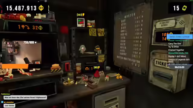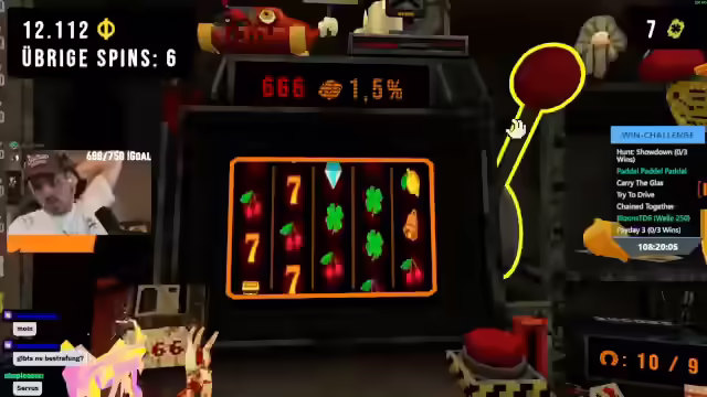 12:19:01Es wird über die Herausforderungen im Spiel diskutiert, wobei es keine direkte Bestrafung für das Nicht-Erreichen der Ziele gibt, sondern es um den Spaß geht. Es wird festgestellt, dass die Kirschen-Items nicht effektiv sind. Es wird über Glücksbringer gesprochen, die Glück erhöhen sollen, aber deren Nutzen in Frage gestellt wird. Es wird überlegt, ob man Glücksbringer vom Tisch verbieten sollte, um das Spiel zu beeinflussen. Es wird ein Free Jackpot gezogen und die Schwierigkeit, Kirschen-Jackpots zu bekommen, trotz hoher Spawnrate der Kleeblätter erwähnt. Es wird eine Karte in die Schublade gelegt und ausgerüstet, um Werte zu boosten. Eine neue Fähigkeit wird entdeckt, die alle am Telefon gewählten Fähigkeiten ein weiteres Mal auslöst, was als "krass" bezeichnet wird. Es wird betont, dass es bei der Challenge um Spaß geht und es sich zu einem kleinen Mini-Sieben-Tage-Stream entwickelt hat.