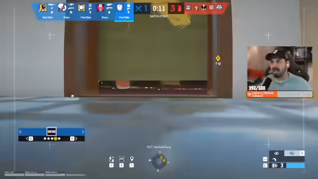 01:42:49Das Rainbow Six Siege-Spiel erreicht einen dramatischen Höhepunkt. Der Streamer findet sich in einer 1-gegen-3-Situation wieder. Trotz aussichtslos erscheinender Odds zeigt er Kampfgeist und versucht, das Rendeavor für sein Team zu retten. Seine Kommentare reflektieren die angespannte Atmosphäre und seine persönliche Einschätzung der Situation.