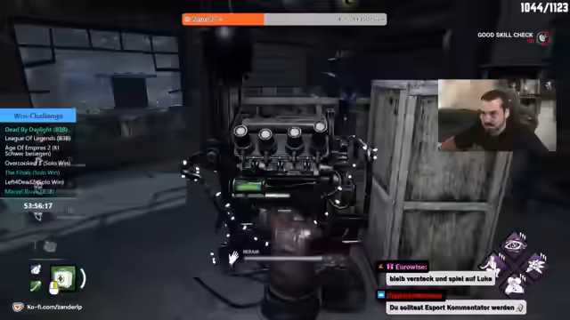 04:12:17Das DBD-Spiel zeigt den Streamer und sein Team, die gegen einen Killer antreten müssen. Sie haben Schwierigkeiten mit dem Spielstil und den unbalancierten Mechaniken, die zu frustrierenden Situationen führen. Der Streamer und seine Mitspieler werden öfter gefangen und gehängt, während sie versuchen, die Generatoren zu reparieren und zu überleben. Obwohl sie ihr Bestes geben, gelingt es ihnen nicht, das Spiel zu gewinnen, was zu Enttäuschung und Humor im Chat führt.