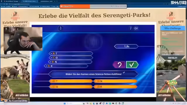 07:10:31Der Streamer hat Probleme mit einigen Quizfragen und macht sich über seine mangelnden Kenntnisse lustig. Bei der Frage nach dem Vertreter der Wanzen tippt er zuerst auf 'Hürdenläufer', muss aber später korrigieren und gibt 'Rückenschwimmer' als Antwort, was falsch ist. Auch bei anderen Fragen zeigt er seine Unsicherheit und benutzt gelegentlich Joker, um weiterzuspielen. Trotzdem bleibt die Stimmung humorvoll und entspannt.