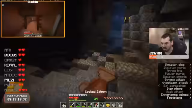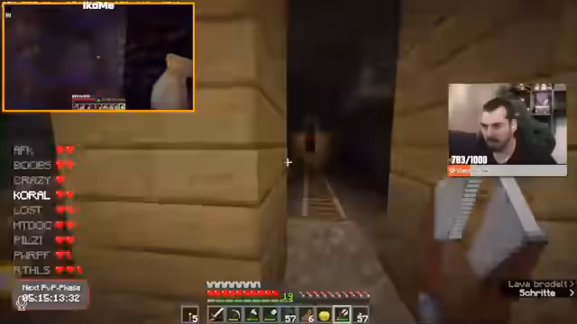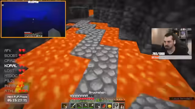 05:18:16Die Aktivitäten verlagern sich in den Minenbau, wobei der Streamer in einem komplexen und verwirrenden Minenschacht umherirrt und seine Orientierung verliert. Es wird versucht, eine strategische Anordnung für eine Mob-Farm zu schaffen, um die Mobs effizient in eine zentrale Position zu leiten. Dabei werden technische Aspekte wie das Platzieren von Wasserquellen, Schildern und der richtige Abstand zum Spawner diskutiert, um das Spawnsystem zu optimieren.