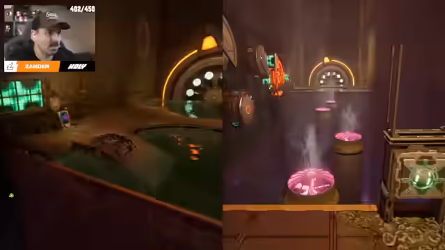 00:10:52Zander setzt das Spiel 'Split Fiction' fort und beschreibt die Umgebung. Er erwähnt einen Drachen namens Salithos und vergleicht das Spiel mit Mario-Vibes. Die Spieler erkunden eine schokoladenartige Welt mit Waffeln und Kuchenrollen, die den Streamer sehr beeindruckt. Es gibt Rätsel zu lösen, wie z.B. das Überwinden von Hindernissen durch präzises Springen und Zusammenarbeit. Das Spiel erzeugt eine starke Atmosphäre und erinnert an Horrorfilme.