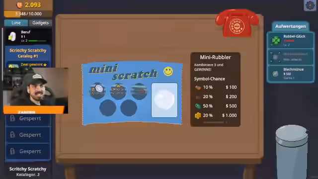 01:34:42Der Stream dreht sich um ein Rubbellos-Spiel, bei dem Lose gekauft und freigerubbelt werden. Der Sprecher probiert verschiedene Lose, wie das '2 gewinnt'-Los, und gewinnt zwischen 10 und 25 Dollar. Um den Prozess zu beschleunigen, werden Aufwertungen wie 'Rubbelglück' und 'Rubbelwerkzeuge' erwähnt, um die Gewinnchancen und die Effizienz beim Freirubbeln zu verbessern. Ein neues, teureres Los mit besseren Preisen wird vorgestellt.