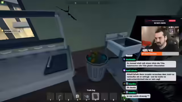 03:50:40Das Drogenimperium wird erweitert. Eine neue Bude wurde gekauft, die viel Platz bietet und mit einer Terrasse ausgestattet ist. Der Umzug gestaltet sich jedoch chaotisch. Der Lagerplatz ist überfüllt und es gibt Probleme mit der Inventarverwaltung. Viele Taschen und Sorten müssen untergebracht werden, was zu einem Chaos führt und den Streamer dazu veranlasst, die Organisation zu verbessern.